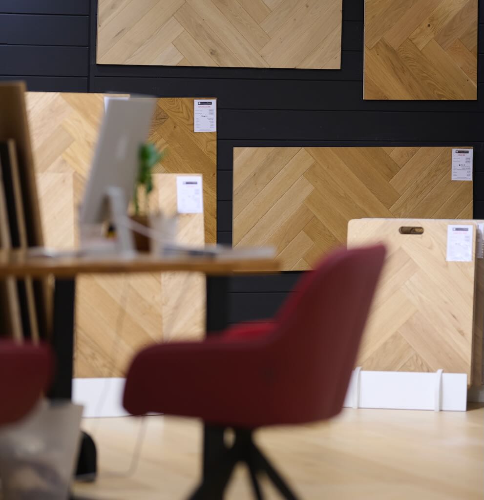 Ici, on parle bois avec passion. Dans notre showroom de 200 m2, près de 300 panneaux et de nombreuses références n’attendent qu’à être touchées, vues, comparées… Que vous soyez amateur de parquet massif, adepte du contrecollé ou séduit par un sol vinyle, on prend le temps de vous écouter pour vous guider dans vos projets.